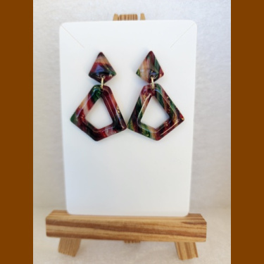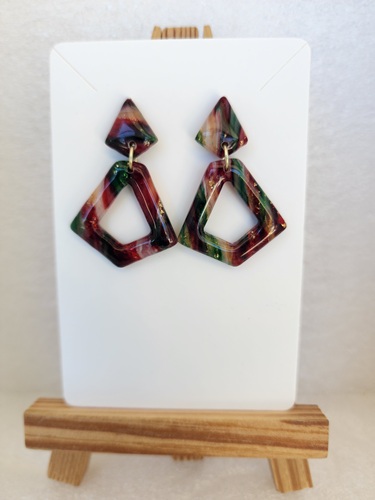 Handmade Polymer Clay Holiday Geometric Earrings - Red & Green